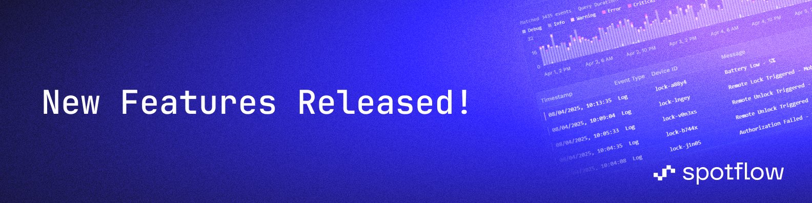 Until now, Spotflow offered pre-built dashboards for fleet health and per-device diagnostics. Custom Dashboards expand on this by letting you create tailored views for any aspect of your device fleet — including product usage and user behavior through your custom application metrics.